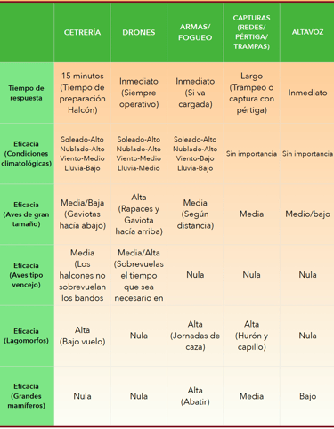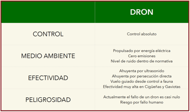 La tecnología de la Cetrería tecnológica con Halcón Robot es el único método que garantiza el control de aves sin sacrificio de especies, exclusivamente por ahuyentamiento, debido a que el Halcón Robot no captura animales ni por accidente, como haría la Cetrería con Halcones vivos, solución al control de aves en piscifactorías, plantas de tratamiento de residuos, agricultura y el resto de entornos que albergan especies protegidas y que por consiguiente, medio ambiente suele rechazar los permisos para la realización del control de especies plaga que están creando un problema. Único método 100% energía verde y eficaz, atacamos directamente el problema con vuelos guiados y precisos.