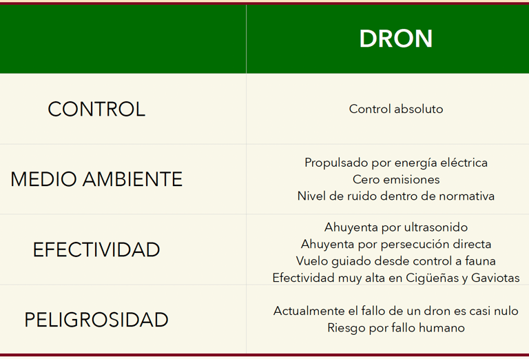 Ofrece una alternativa tecnológica a la cetrería tradicional, con un efecto disuasorio visual y de movimiento sobre aves como palomas, estorninos o gaviotas, sin causarles daño.